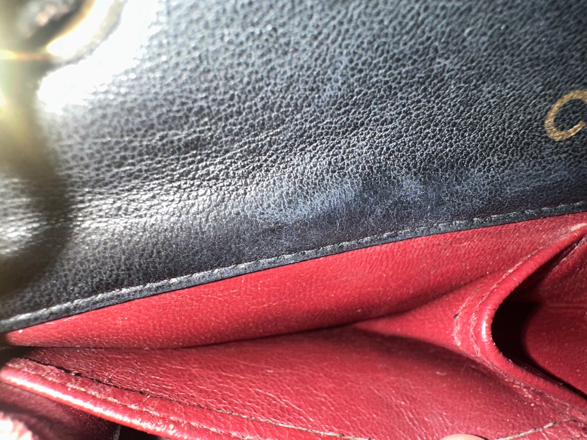 Borsa di lusso usata che potrebbe presentare normali segni del tempo.