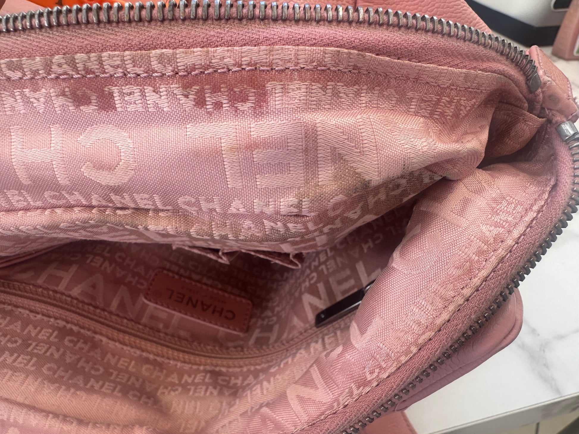 Chanel Pink Calfskin Wild Stitch Choco Bar